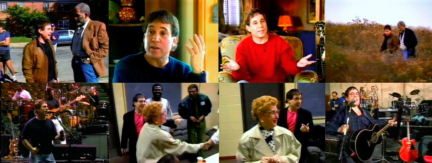 Comentarios: Interesante reportaje de unos 13 minutos sobre Paul Simon en este veterano programa de televisión (tipo Informe Semanal en España). Simon es entrevistado por Ed Bradley haciendo un repaso a su vida, llevandolo frente a la casa donde vivio su infancia, sus tiempos con Garfunkel, su relación con su ex Carrie Fisher, con sus padres, Graceland, su casa en Montauk... vemos imagenes de Simon presentando a su madre a sus músicos antes de un concierto e imagenes de ensayos con su banda.