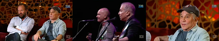 Comentarios: Entrevista a Paul Simon y Sting en este programa de actualidad con motivo de su paso por Australia.