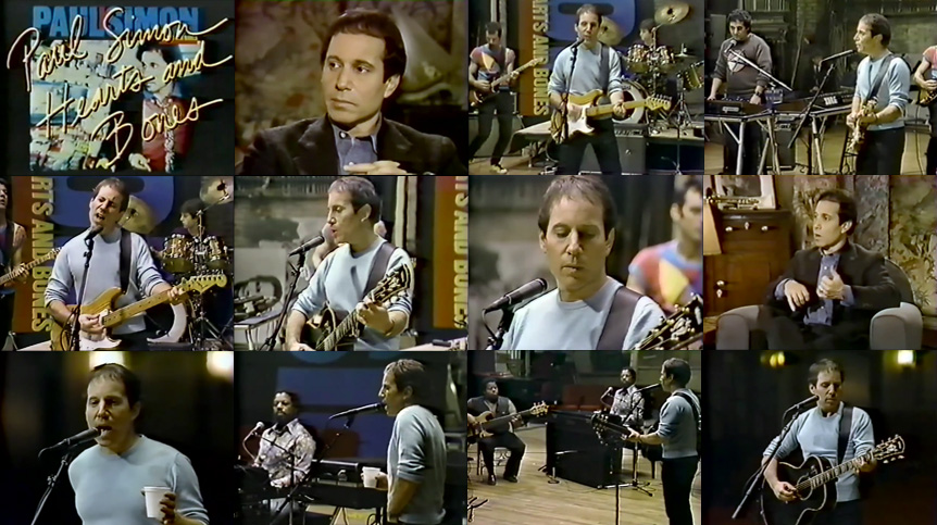 Comentarios: Programa dedicado al nuevo disco de Paul Simon, "Hearts and Bones". Durante 25 minutos podemos ver una entrevista a Simon intercalada con la interpretación de "Think too Much (a)", "The Late Great Johnny Ace" (Con quinteto de cuerda y viento), "Rene and Georgette Magritte" y "Hearts and Bones" grabadas (sin público) desde el Beacon theatre de Nueva York con los músicos Richard Tee al piano, Dave Weckl a la batería, Sid McGinnis a la guitarra, Anthony Jackson al bajo y Robert Sabino a los teclados.