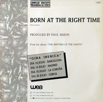 Single promocional Espaņol, lanzado con motivo de la llegada a Espaņa y Portugal del "Born At The Right Time Tour".