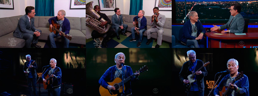 Comentarios: Paul Simon vuelve como invitado en The Late Show with Stephen Colbert. El programa empezó con una vista a la sala de invitados donde veíamos a Simon con su guitarra tocando unos acordes de "In The Garden of Edie", aparece Stephen Colbert y le comenta que uno de sus temas favoritos es "Feelin' Groovy'", Paul le responde que la odia, que se ha quedado anticuada así que deciden hacer una versión con una nueva letra paródica adaptada a la era Trump.