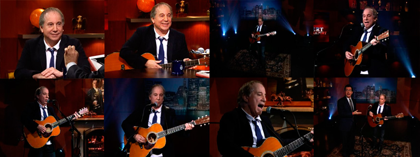 Comentarios: Paul acude a este programa de humor conducido por Stephen Colbert para presentar su libro "Lyrics 1964-2008", un título que Colbert consideró poco poético (su sugerencia: Word Salad Jazzmatron). En una breve entrevisata el presentador le pidió a Simon que defendiera algunas de sus letras, que explicara exactamente qué estaba haciendo Julio en el patio de la escuela y por qué Paul necesitaba dejar a Cecilia para lavarse la cara. "Bueno, eran los años 60, así que no recuerdo", contestó. Después interpretó "American Tune".