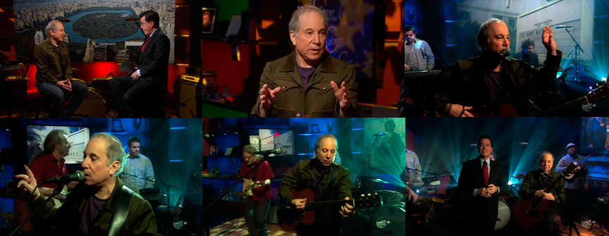 Comentarios: Paul Simon acude al programa de Stephen Colbert para interpretar por primera vez en directo y tras una breve entrevista, su nuevo single, "Getting Ready for Christmas Day".
