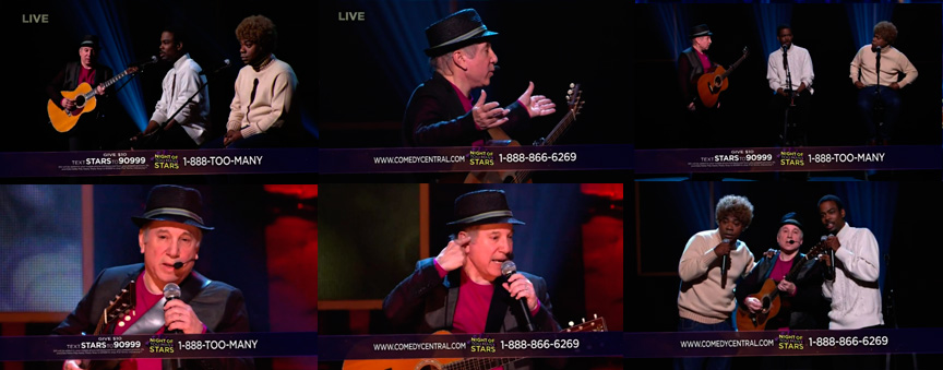 Comentarios: El 2 de octubre de 2010 tuvo lugar en el Beacon Theater de Nueva York el acto benéfico "Night of Too Many Stars" para recaudar fondos para la educación del autismo. Paul Simon apareció por sorpresa mientras los actores Tracy Morgan y Chris Rock hacían una parodia de Simon & Garfunkel interpretando "Scarborough Fair", Paul Simon se unió a ellos con su guitarra interrumpiendo varias veces a los actores para dar consideraciones musicales. Lo mejor vino después cuando Paul sorprendiendo a todos los presentes interpretando un rap, "Gin and Juice" de Snoop Dogg.