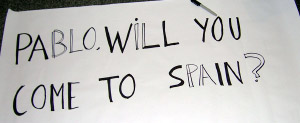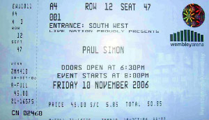 Desde ese momento hasta el final del concierto ya nos quedamos allí. Fue maravilloso, sigue teniendo muy buena voz y está en forma. Esta segunda vez ya llevé conmigo mi pancarta que decía: PABLO, WILL YOU COME TO SPAIN?, no era muy grande, pero la vio! entornó los ojos para leerla y no puso muy buena cara, puso cara de cansado o de estresado… La gente de las primeras filas seguía poniendo mala cara, me llegaron unas cuantas gotas de vino de algún rico malhumorado de la primera fila, pero el sitio ya estaba pillado. Paul Simon parecía estar en su casa, se le veía contento y emocionado, supongo que como en todos los conciertos.