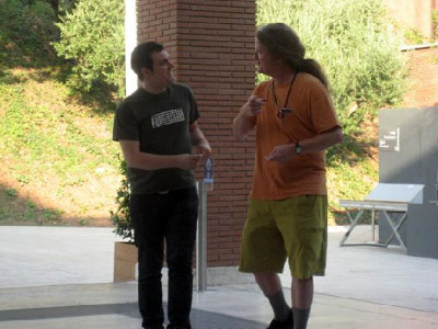 Después de un paseo y escuchar cómo iban haciendo la prueba, estaba en la cafetería del auditorio y vi salir a Mark Stewart, al que me apresuré a saludar. La verdad que me atendió muy amable, saludando y charlamos un poco sobre la gira, le dije que había ido desde Pamplona a verles y él se mostró agradecido por ello. Así como a Paul no se le vio el pelo, parece que a Mark le gusta salir, ver el ambiente y estar en contacto con la gente, ya que se mostró muy cercano, y después de eso le vi pasear varias veces más por los alrededores haciéndome un gesto de saludo cada vez que pasaba a mi lado.