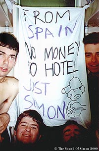 Va anocheciendo y cesando el traqueteo que tiene inquieto a Paco "¿es normal que esto tiemble tanto y haga este ruido?". Y a la espera de que abrieran las camas, comienzan la creación de la pancarta. que ondearán orgullosos ante el cantautor de Nueva York. Tras varias propuestas, resulta escogida la que reza: "From Spain. No Money. No Hotel. Just Simon". Aitor trae ya preparado un trozo de sábana en la que ha hecho una curiosa caricatura de Paul, que rematará la frase que, sin ellos saberlo aún, se convertirá en una especie de eslogan en sus próximos días parisinos.