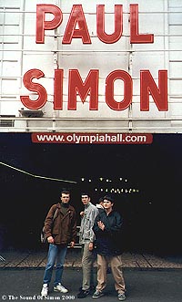 Con Paco dirigiendo la comitiva, plano en mano, llegamos a la Rue des Capucines, a la búsqueda del número 18. "¿Es allí?", pregunta el propio Paco. Todos agudizan la vista. Unas letras grandes, rojas, a lo lejos... "¡Sí, es el Olympia!", confirma uno de ellos. Sin embargo, nadie hace ningún comentario.Están demasiado ocupados tratando de dilucidar las otras letras,hasta que... P-A-U-L S-I-M-O-N. Aceleran el paso, al tiempo que rebuscan en sus bolsas por las cámaras de fotos. Allí están ante la marquesina de uno de los teatros más importantes de Europa, que anuncia en grandes tipos luminosos la presencia de Paul en su escenario.