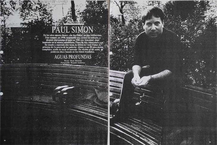 Físicamente, Paul Simon es un ser tan anodino que ni siquiera consigo recordar como iba vestido: probablemente llevaba unos vaqueros, quizás un jersey gris, o blanco, o negro, qué más da. Un color sin color del que emergió su cara pálida y borrosa. Bajo de estatura, y tan quieto de expresión como un ofidio. Hace mucho tiempo formó, con Garfunkel, el más célebre dúo de los años sesenta. Luego emprendió una discreta carrera en solitario hasta que, en 1986, obtuvo un formidable éxito con Graceland, un disco basado en la música surafricana. De modo que Paul Simon es nuevamente un gran triunfador. Pero no se le nota: es un hombre modoso, apagado y austero. Incluso llegó a nuestra cita con toda puntualidad, cosa absolutamente inusual en una superestrella de la música pop.