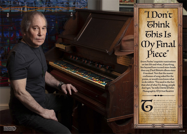 Las exquisitas reflexiones de Seven Psalms sobre el final de la vida y lo que hay más allá, si es que hay algo, ha llamado más la atención que cualquier álbum de Paul Simon desde Graceland. No es que el maestro artesano de la canción haya pedido estos elogios ni sepa qué hacer con ellos. "Estoy acostumbrado a que la gente no entienda mucho de lo que hago", le dice a David Fricke.