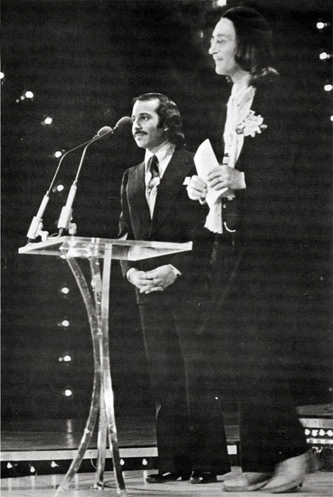 Junto a John Lennon en la gala de los premios Grammys. 1975