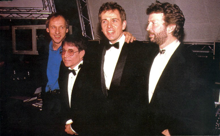 Junto a Mark Knopler, Peter Grabiel y Eric Clapton en los premios Brits. 1987.