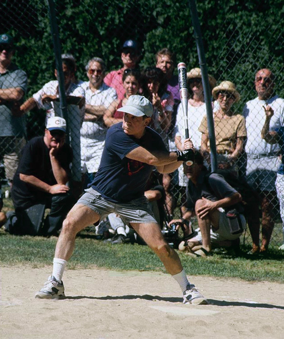 Jugando el Annual Artists & Writers Charity Softball Game. 1995.