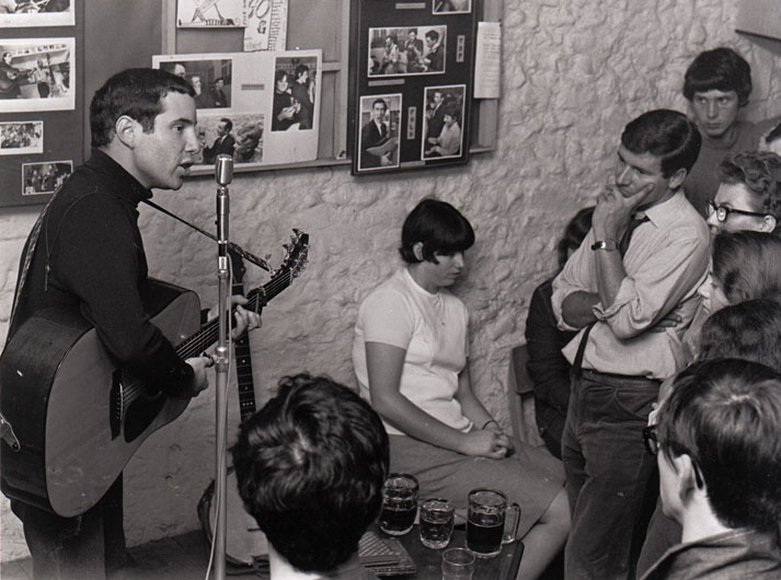 Paul Simon durante su actuación en el Jaquard Club de Norwich (UK). 1965