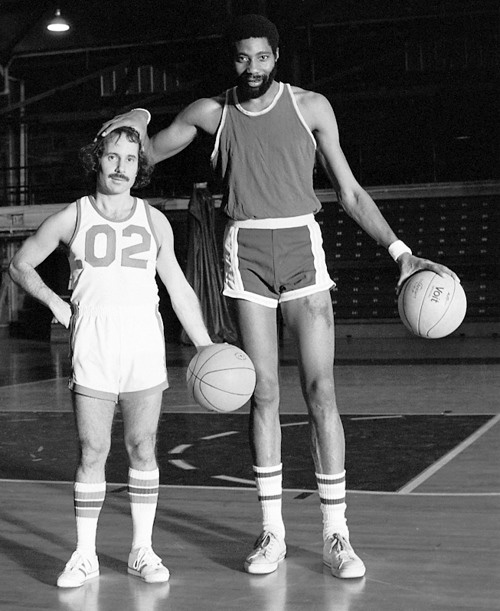 Junto al baloncestista Connie Hawkins durante la grabación de un sketch para SNL. 1975.