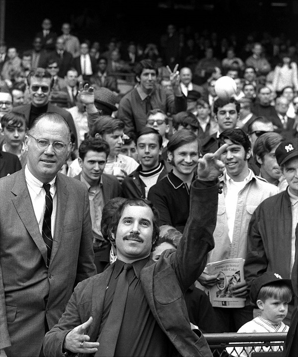 Haciendo el saque de honor en el estadio de los Yankees de Nueva York. 1969.
