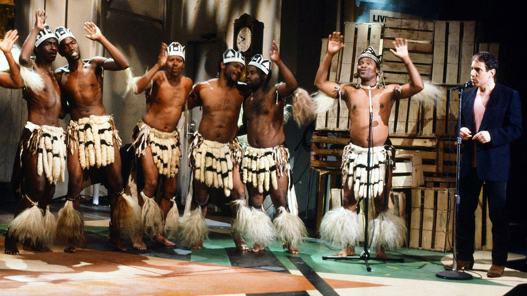 Junto a Ladysmith Black Mambazo en Saturday Night Life. 1986