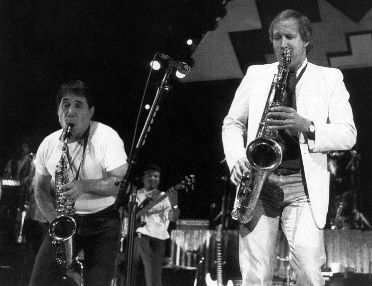 Con Chevy Chase durante un concierto del Graceland Tour. 1987.