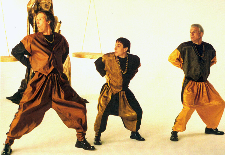 Junto a Chevy Chase y Steve Martin en la grabación del videoclip de "Proof". 1990.