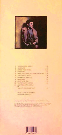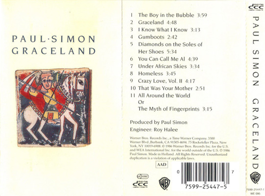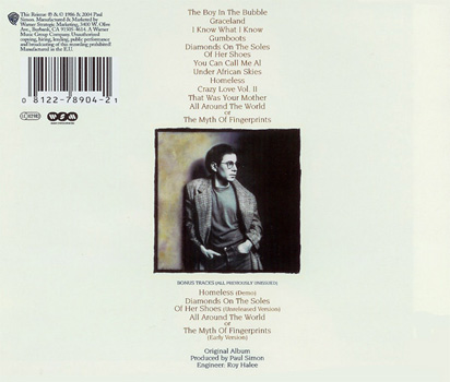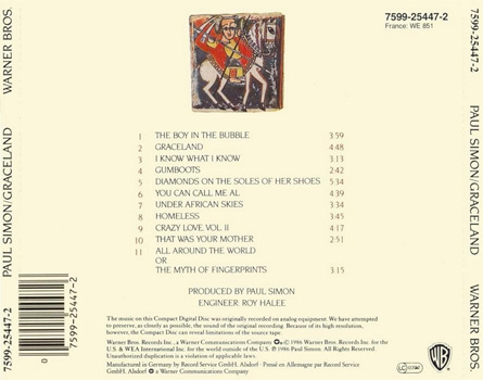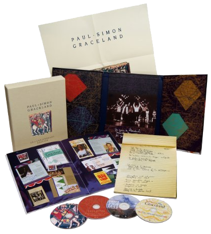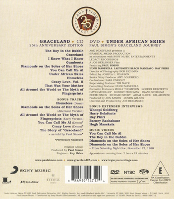 Además de los Cds se incluían los dvd de "Graceland: The African Concert" y del documental elaborado para la ocasión "Under African Skies", un poster, un libro y una reprodución del cuaderno con las letras manuscritas de Paul Simon.
