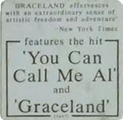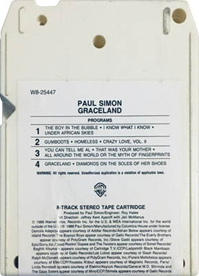 Aunque ya en deshuso en aquellos tiempos, Graceland llegó a ser editado en una tirada muy reducida en Cartucho de 8 pistas (8-Track). Fabricado por Columbia House bajo licencia de Warner, a día de hoy conseguir una copia es muy difícil.