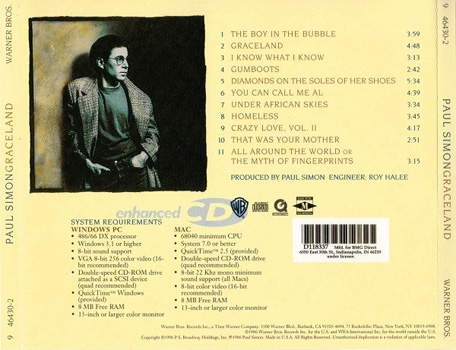 En 1996, para celebrar el 10º aniversario de su publicación, Warner. Como novedad incluía una pista para reproducir en el ordenador con videos, imágenes y entrevistas. Es conocido como Graceland Enhanced.