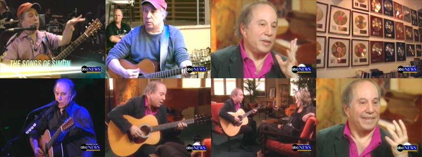 Comentarios: Reportaje de unos 9 minutos con el titulo de "The Songs of Simon", donde podemos ver a Paul hablando con Cynthia McFadden desde su oficina sobre que le inspiró para su ultimo disco. Incluye clips de Simon ensayando con la banda y de su actuación en la gala de la revista Time. Pero lo mejor son los fragmentos acústicos de "Slip Slidin´ Away" y "Wartime Prayers" con los que Paul obsequia a su entrevistadora.