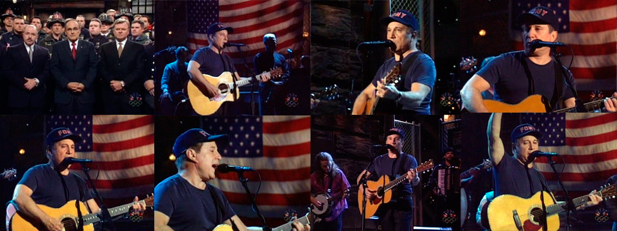 Comentarios: Inicio de la nueva temporada de Saturday Night Live, con los atentados terroristas del 11 de septiembre aun muy recientes, el programa comienza con unas palabras del alcalde de Nueva York, Rudolph Guiliani, acompañado por una representación de miembros del cuerpo de bomberos y policías de la ciudad, Paul canta una sentida "The Boxer". Tras la actuación y unas nuevas palabras del alcalde, es hora de dejar las penas, el espectáculo debe continuar, Guiliani grita el ya famoso "Live, from New York! It's Saturday Night!" que da inicio al programa.