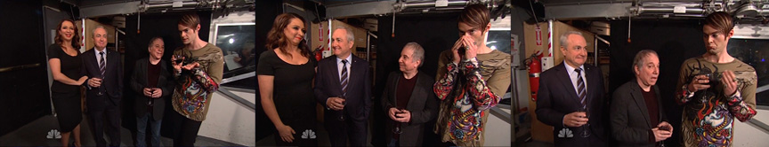 Comentarios: Paul Simon aparece fugazmente en un cameo. Maya Rudolph, que era la artista invitada, se metió entre bastidores durante su monólogo y se encuentra a Lorne Michaels, el creador del show, que estaba acompañado por Paul Simon y por el actor Bill Hader en el papel de Stefon.