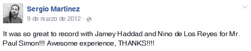 Aunque según cuenta Simon las sesiones tuvieron lugar en Marzo de 2013, en el Facebook de Sergio vemos que en realidad fueron un año antes, 2012.