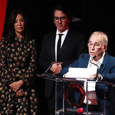 Paul Simon fue el encargado de entregar el primer George Harrsion Global Citizen Award (premio que honra a los músicos que dedican su vida al activismo) que fue entregado precisamente a título póstumo a George Harrison. En su discurso, Simon, se refirió a la influencia global y el impacto que consiguió George Harrison en todo el mundo con el Concierto para Bangladesh de 1971 como prueba de cómo "la música puede construir un movimiento". Recogieron el premio su hijo y viuda, Dahni y Olivia Harrison, que terminó con un "Sólo queremos dar las gracias a Paul Simon, que es realmente un ciudadano del mundo y que ha estado haciendo música para el bien de los demás durante décadas". Acto seguido Paul Simon interpretó con la ayuda de Mark Stewart la canción de George Harrison "Here Comes the Sun”.