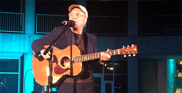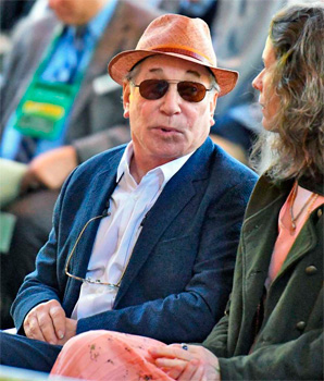 ![]() Un dia antes, el 26, en la fiesta de presentación de la exposición, Paul Simon hizo una aparición sorpresa y ante un reducido grupo de personas interpretó con su guitarra clasicos como "The Sounds of Silence", "Mrs Robinson", "America", "Cecilia", "Homeward Bound" y "The Boxer".