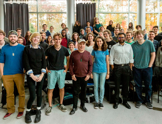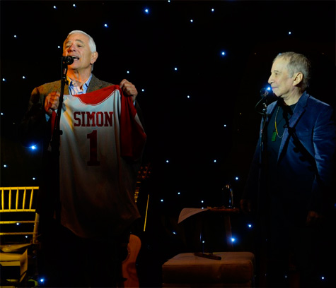 ![]() Ese mismo día por la mañana, Simon pasó un tiempo con 70 estudiantes de composición de Skidmore, dirigiendo un taller y compartiendo pistas demo de la etapa inicial de desarrollo de "Bridge Over Troubled Water", para que los estudiantes experimentasen cómo evolucionó la canción. Otra de las piezas que pudieron escuchar los alumnos en exclusiva fue la grabación de la nueva versión de "Darling Lorraine" que formara parte de su nuevo disco, el cual hemos podido saber que se está pensado publicar en la primavera de 2018 coincidiendo con la salida de su biografía autorizada.