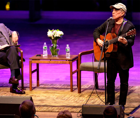 ![]() Marzo 2017 El 2 de marzo, en el Carolina Theater de Durham, tuvo lugar la "Half-Earth: How to Save the Natural World" una charla-conferencia, promovida por el entomólogo estadounidense E.O. Wilson, creador del término "biodiversidad" y que en su último estudio, para salvar la extinción de las especies, propone la existencia de unas áreas protegidas que sumadas abarquen la mitad de la superficie terrestre y marítima de la Tierra. La conferencia que pudo seguirse en directo vía streaming contó con la colaboración especial de Paul Simon que al final del evento interpretó los siguientes temas solo acompañado por su guitarra acústica: "America", "Homeward Bound", "Me and Julio", "The Boxer" (durante cuya interpretación interrumpió la canción para contar una anécdota de cuando se cruzó con una mujer por Central Park, y le dijo: "Tú eres el cantante preferido de mi hijo pequeño, ¿a que no adivinas cuál es su canción favorita?. "The Boxer". Pero cuando llega la parte de The whores on Seventh Avenue , nosotros le decimos Toy Store on Seventh Avenue. ¡Es una buena línea!" dijo Simon entre risas) y "The Sound of Silence". Durante la actuación comunicó que todo el dinero recaudado en su próximo tour de junio lo donará a la fundación de E.O. Wilson. Abajo puedes ver el evento completo, la actuación de Simon a partir de 01:54:00