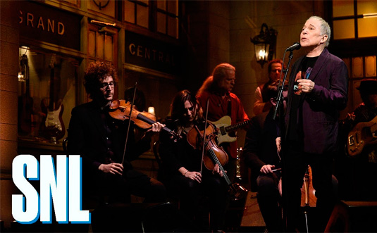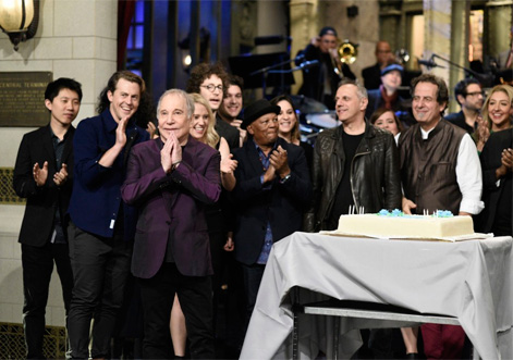 Octubre 2018 El 13 de Octubre, día de su 77 cumpleaños, Paul Simon volvió a pisar el plató de Saturday Night Live en su novena aparición musical, más que ningún otro artista en la larga historia del programa, quince en total en el show. Para esta ocasión y con motivo de la presentación de su último disco Simon interpretó junto a yMusic "Can’t Run But" y el nuevo arreglo de "Bridge Over Troubled Water" de Gabriel Kahane que ha estado interpretando durante sus conciertos en la gira de despedida.
