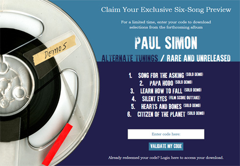Las seis canciones que se pueden descargar en exclusiva son: Song For The Asking (Solo Demo), Papa Hobo (Solo Demo), Learn How to Fall (Solo Demo), Silent Eyes (Filme Score Outtake), Hearts and Bones (Solo Demo) y Citizen of The Planet (Solo Demo).
