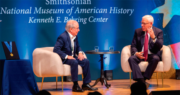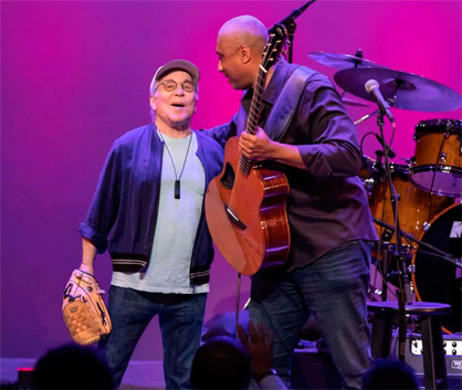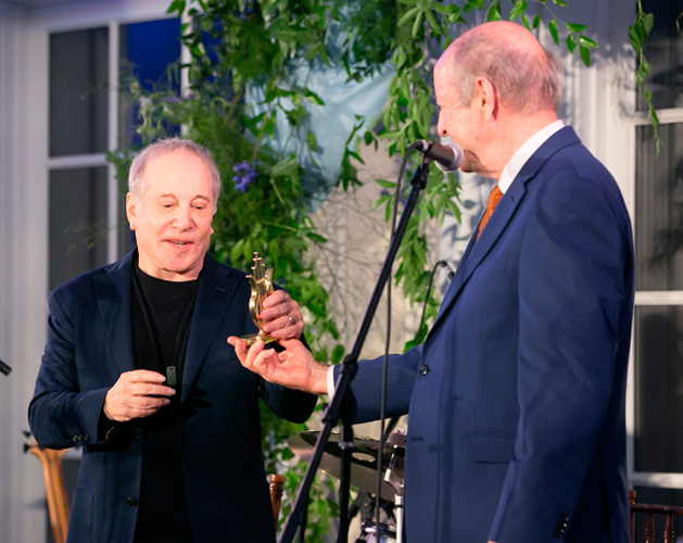 Septiembre 2019 El 18 de Septiembre en el Museo Nacional de Historia Estadounidense, administrado por la Institución Smithsonian, situado en Washington D.C., se congregaron una multitud de admiradores para dar la bienvenida al músico, cantante, compositor y filántropo Paul Simon, quien acudió para recibir la codiciada Medalla Great Americans del museo, un premio que se otorga anualmente a personas cuyo trabajo en la vida encarna ideas e ideales estadounidenses. "Como una institución que honra, recopila e interpreta la historia de Estados Unidos, su trabajo nos emociona especialmente", dijo sobre Simon la directora del museo, Anthea M. Hartig, en la ceremonia del miércoles por la noche. “Así como su música es atemporal, está profundamente arraigada en momentos muy específicos del siglo XX y principios del siglo XXI. Nos ayuda a tocar la política, la cultura, nuestro estado de ánimo nacional, nuestro amor y nuestras vidas". El premio Great Americans se otorgó por primera vez en 2016. Simon es el sexto en recibir la medalla de oro de 1.85 onzas, inspirada en una moneda Double Eagle de 20 dólares que se lanzó por primera vez a principios del siglo XX. Sigue los pasos de Madeleine Albright, el general Colin Powell, Tom Brokaw, Cal Ripken Jr. y Billie Jean King. Durante el acto de entrega del premio ofreció una charla con el presidente de la Junta de Regentes del Smithsonian, David M. Rubenstein, a un público que habían hecho cola desde horas antes para entrar al evento. Simon no los decepcionó, durante más de una hora contó historias de su larga carrera con un sentido del humor que deleitó a la audiencia. Simon pasó por varios temas, sobre sus composiciones y sus primeros días en el negocio musical, "No sabía leer ni escribir música, por lo que mi padre, un músico profesional, crearía las partituras. Luego, las enviaría a la Biblioteca del Congreso para que obtener derechos de autor", dice Simon. En 2007, cuando la Biblioteca del Congreso le otorgó el primer Premio Gershwin anual para Canción Popular, el personal le mostró algunos de esos manuscritos originales, le dijo a Rubenstein. También momentos de humor como cuando le preguntó "¿Quién es Julio?", "Nunca se lo he contado a nadie, alguien tendría que tener millones de dólares para que se lo contara". Sobre su reciente interés por la ecología Simon comento: "Tengo hijos, y me da vergüenza y lástima que dejemos este planeta dañado a esa generación y a sus hijos". Dijo que había visto a E.O. Wilson dar una charla hace una docena de años de la que quedo intrigado, y luego se volvió a encontrar con él nuevamente hace unos años y leyó su libro, Half-Earth: Our Planet’s Fight for Life, que presenta un plan para salvar al planeta del cambio climático, ha sido una inspiración, dice. Se ha comprometido a que todas las ganancias de futuros conciertos se destinarán a varias organizaciones ambientales. Aunque Simon se retiró de las giras en 2018, ha dado varios conciertos este año en Maui y San Francisco y donó las ganancias a causas locales. "Ni siquiera es generoso", dijo Simon. "Es simplemente una responsabilidad. Lo que es generoso es lo que la naturaleza nos ha proporcionado durante cientos de miles de años", dice, y agrega que donar sus ganancias "es lo mínimo que puede hacer por ello". Sobre su retirada y futuro, comento que cuando terminó su álbum de 2016 Stranger to Stranger: "Es casi como si se hubiera apagado un interruptor y dije, ya he terminado". Su sensación era que no creía que pudiera hacerlo mejor, y que le estaba llevando tres años para completar cada álbum. Entonces se dijo a sí mismo: "No veo por qué debería pasar tres años haciendo otro álbum que sea tan bueno como este cuando podría ver las islas del Pacífico Sur o podría ir a la India, no he estado allí". Y a su edad reconoce: "No es que tenga una cantidad infinita de tiempo frente a mí". Sin embargo reconoce que aunque dejó la escritura por un tiempo, recientemente, un sueño le dijo que debería trabajar en una pieza musical, en particular una pieza musical larga. Él ha estado tocando con su guitarra. "Pero todavía no he puesto las letras", dice. Pero lo hará. "Sé que esta pieza en particular va a ser sobre las palabras".