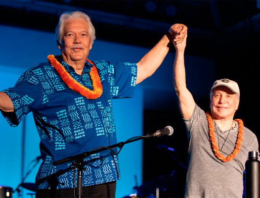 ![]() ![]() Ambos conciertos tuvieron lugar en el Maui Arts & Cultural Center, El set list fue el mismo de los anteriores conciertos menos "America" y "American Tune". Simon invito a ambos conciertos al guitarrista hawaiano Keola Beamer para interpretar juntos "Seabreeze" y luego Keola en solitario hacer su éxito "Honolulu City Lights". En el concierto del día 14 de agosto toco el mismo repertorio y los dos temas de Keola Beamer pero esta vez con el añadido de la presencia por sorpresa de Michael McDonald, más conocido por haber formado parte de The Doobie Brothers con quien hizo "Cecilia" que fue mezclada con fragmentos de la canción de Billy Preston "Will It Go Round In Circles". Todo los beneficios de estos conciertos se destinaron a las iniciativas de conservación de la biodiversidad de Simon a través del Proyecto de Restauración Forestal Auwahi y Kua‘āina Ulu ‘Auamo (KUA).