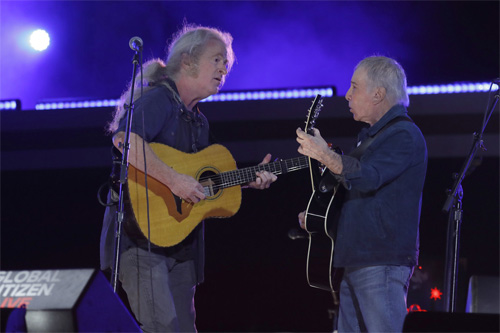 Septiembre 2021 Más de 70 artistas y 15 ciudades participaron el 25 de septiembre en el “Global Citizen Live 2021”, un concierto masivo que reunió a diferentes artistas con el objetivo de defender el planeta y combatir la pobreza y a la pandemia con el dinero recaudado, que se va a destinar también a luchar contra el cambio climático y ayudar a la igualdad entre todos los países. El evento central fue el concierto realizado en el Great Lawn de Central Park, Nueva York, donde frente a 60.000 personas, se presentaron artistas de la talla de Coldplay, Billie Eilish, Jennifer López, Cindy Lauper o Jon Batiste entre otros. Cuando terminaba el set de Colplay, cabezas de cartel del festival (se suponía que lo iban a cerrar), su lider Chris Martin se dirigió a la audiencia y dijo “Gracias por devolvernos al trabajo. Estamos al final del show, y normalmente tocaríamos una canción muy larga, lenta y aburrida de Coldplay, pero el hombre que están esperado las 70.000 personas que han estado aquí todo el día... no podemos darles algo que supere a eso. Quien sabe cuántas veces van a poder volver a ver a esta persona de nuevo, ya no toca tanto. Él es uno de nuestros héroes de ensueño absolutos, y define Nueva York y define la música de verdad, también nos enseñó a la mayoría de nosotros en Inglaterra sobre la música africana. Se suponía que iba a tocar aquí hace un mes más o menos, pero la lluvia dijo que no, así que suponemos que es nuestro deber... Por favor den la bienvenida desde el panteón de los más grandes entre los grandes de los grandes a Mr. Paul Simon” que apareció por sorpresa, ya que no estaba anunciado, para cerrar el evento en la ciudad de Nueva York con una breve actuación de dos canciones, “The Boxer” acompañado por su inseparable Mark Stewart y por C. J. Camerieri, y después de presentar un video e invitar al escenario al biólogo E.O. Wilson, el espectáculo de seis horas y media terminó con “The Sound of Silence” con Paul Simon acompañado solo por su guitarra. Así Simon se quitó la espinita que tenía clavada después de la suspensión en agosto del megaconcierto “We Love NYC”. Además del de Nueva York, se celebraron conciertos en París, Los Ángeles, Londres, Lagos, Río de Janeiro, Sidney, Bombay, Seúl, Las Vegas, Joahnnesburgo, Madrid y Buenos Aires, entre otros, con actuaciones de Elton John, Stevie Wonder, Duran Duran, Metallica o Ed Sheeran entre muchos otros. Puedes ver la actuación de Paul Simon pinchando Aquí.