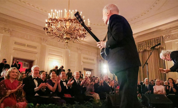 ![]() ![]() “Paul Simon ha inspirado a fans de todo el mundo con letras y canciones que generaciones enteras se saben de memoria y pueden reconocer desde las primeras notas”, dijo la directora ejecutiva de PEN America, Suzanne Nossel, en un comunicado. “Su fascinación por las diferentes culturas, tradiciones y ritmos ha ayudado abrir nuestros oídos y mentes a las tradiciones musicales esenciales. Hemos sido elegidos para rendir homenaje a este artista creativo incomparable cuya música, junto con su compromiso con los valores humanos y las causas humanitarias, lo ha convertido en un ícono cultural”. Simon recibirá su premio en la gala anual de PEN, que se celebrará el 16 de mayo en el Museo Americano de Historia Natural de Manhattan. Abril 2024 El 10 de abril tuvo lugar en la Casa Blanca una cena de Estado ofrecida por el presidente estadounidense, Joe Biden, al primer ministro japonés, Fumio Kishida. Al banquete asistieron unos 200 invitados, entre ellos el actor Robert De Niro, el fundador de Amazon, Jeff Bezos, el consejero delegado de Apple, Tim Cook, y miembros destacados de la política, como el expresidente Bill Clinton y su mujer Hillary Clinton. Tras la cena llegó una actuación especial de Paul Simon que estuvo acompañado por su guitarrista Mark Stewart. Según informó la Casa Blanca la actuación de Simon se produjo por mediación de la primera dama, quien lo seleccionó como parte del tributo a Kishida debido a que el primer ministro japonés también comparte su entusiasmo por las canciones de Paul Simon. Desde que asumió el cargo en enero de 2021, Biden solo ha ofrecido cinco visitas de Estado, un honor que Washington reserva para sus aliados más cercanos. Paul Simon interpretó "Graceland" y un medley que incluía "Slip Slidin’ Away", "Mrs. Robinson" y "The Boxer" y finalizó con "The Sound of Silence", esta última con Mark Steward al violonchelo. En un momento entre canción Simon le dijo al presidente Biden: "Soy un año mayor que tú, así que quiero decirte: '¿Qué tal, chaval?". Puedes ver la interpretación de Graceland Aquí.
