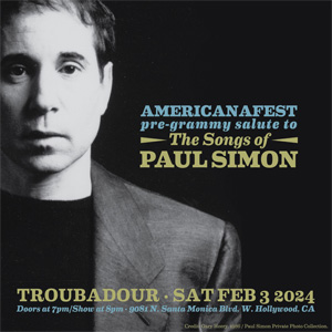 ![]() ![]() ![]() El cartel incluye a la mayoría de los artistas que compiten por los Grammy la noche siguiente en las categorías de música americana, folk y raíces americanas. Los nominados de 2024 que actuarán en West Hollywood la noche antes de dirigirse al centro de la ciudad para los premios incluyen a Jason Isbell con el guitarrista de 400 Unit, Sadler Vaden, Madison Cunningham, Allison Russell, Brandy Clark, Rufus Wainwright, Sara y Sean Watkins de Nickel Creek, Ketch Secor de Old Crow Medicine Show y los Blind Boys of Alabama. Otros artistas programados para actuar son Jackson Browne, Marcus King o Natalia Lafourcade entre otros. La banda de la casa contará con dos viejos conocidos de Simon, sus músicos de gira en los últimos años Jim Oblon a la guitarra y CJ Camerieri en la trompeta. No está programada la presencia de Simon en el evento.