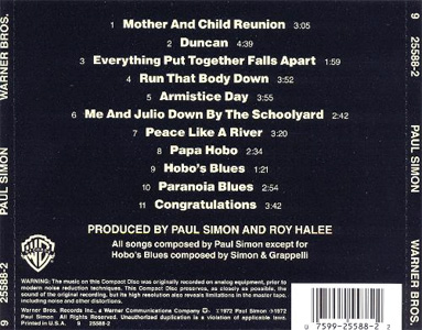 En 1988 Paul Simon consigue hacerse con los masters originales de sus trabajos para Columbia. Warner no espera mucho (aprovechando el tirón de Graceland) y ese mismo otoño reedita en LP, Cassette y por primera vez en Compact Disc (CD) sus primeros discos.