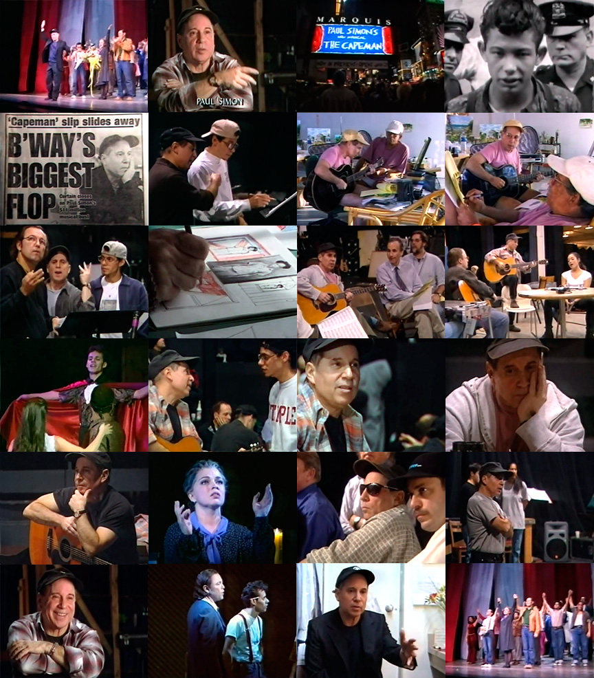 Comentarios: Interesantisimo documental de casi dos horas de duración donde se recoge el proyecto de The Capeman desde sus principios, podemos ver a Paul Simon y a Derek Walcott en el caribe escribiendo las canciones, parte de los casting, ensayos, Simon enseñandole a los artistas las canciones cantándolas con su guitarra, todas las historias, las manifestaciones y protestas, las campañas de publicidad, las broncas y momentos difíciles, las risas, entrevistas a allegados de Salvador Agron, el día del estreno, el batacazo...todo. Un seguimiento de años resumidos en 2 horas.