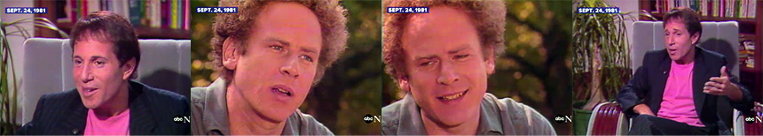 Comentarios: Filmado el 18 de septiembre de 1981, el día antes del Concierto en Central Park, y transmitido el 24 de septiembre de 1981 en ABC News, Simon y Garkunkel (por separado) hablan con Geraldo Rivera sobre su amistad de años y su asociación musical.