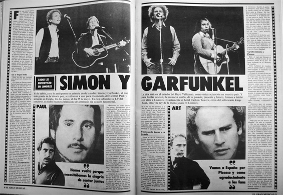 “Yo estaba en Europa cuando Paul me llamó para que le acompañara en su concierto del Central Park. No dos o tres canciones, como hicimos en Toronto. Nos encontramos Paul y yo en Nueva York. Charlamos a fondo, con más sinceridad que nunca. Supimos que aquello estaba renaciendo. Y hasta amigos comunes sugirieron la idea de hacer todo el concierto juntos. Era lógico. Si actuábamos juntos en la segunda parte, Paul quedaba en la primera como un “telonero” del dúo. Y él solo tras los dos no tenía sentido. Así que, con toda naturalidad, fue un concierto entero de los dos”.