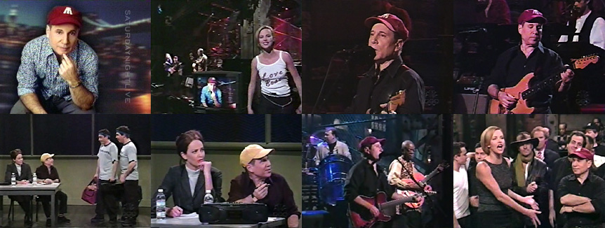 Más tarde participa en un divertido sketch junto a la presentadora, Charlize Theron, donde ambos hacen de jurado para una audición y tienen que soportar a los hermanos DeMarco y sus performances sobre canciones de Simon.