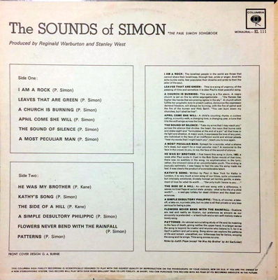 En Canadá, Columbia también edito el disco, con una portada diferente y el nombre de "The Sounds of Simon". Una pequeña tirada muy difícil de conseguir y objeto de culto para los coleccionistas hoy en día. En la contra se omite el texto escrito por Paul Simon.