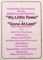 Las ediciones Italiana y Sudafricana prefirieron llevabar texto impreso directamente en la portada. En el caso de la Italiana (Izquierda) se podía leer: "Simon & Garfunkel Di Nuovo Insieme Interpretano "My Little Town" Contenuto in Questo LP". Por su parte en la edición Sudafricana se podía leer: "Featuring 'My Little Town' by Simon & GArfunkel and 'Gone at Last' with Phoebe Snow".