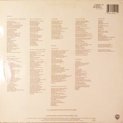 En 1988 Paul Simon consigue hacerse con los masters originales de sus trabajos para Columbia. Warner no espera mucho (aprovechando el tirón de Graceland) y ese mismo otoño reedita en LP, Cassette y en Compact Disc (CD) sus primeros discos.