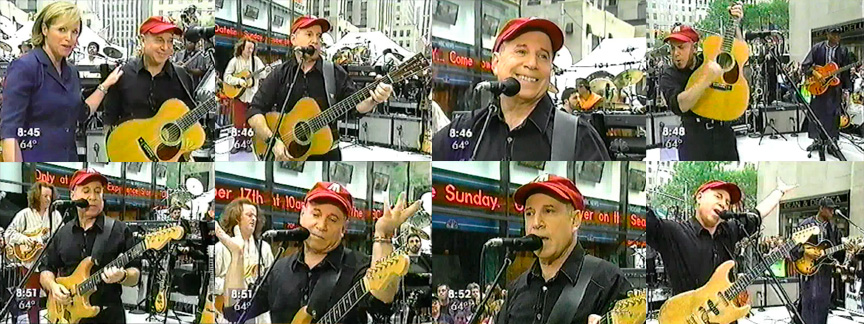 Comentarios: Por segundo día consecutivo Paul aparece en el Today Show, y desde la Rockefeller Plaza de Nueva York interpreta, "Me and Julio Down by The Schoolyard" y "You're The One".